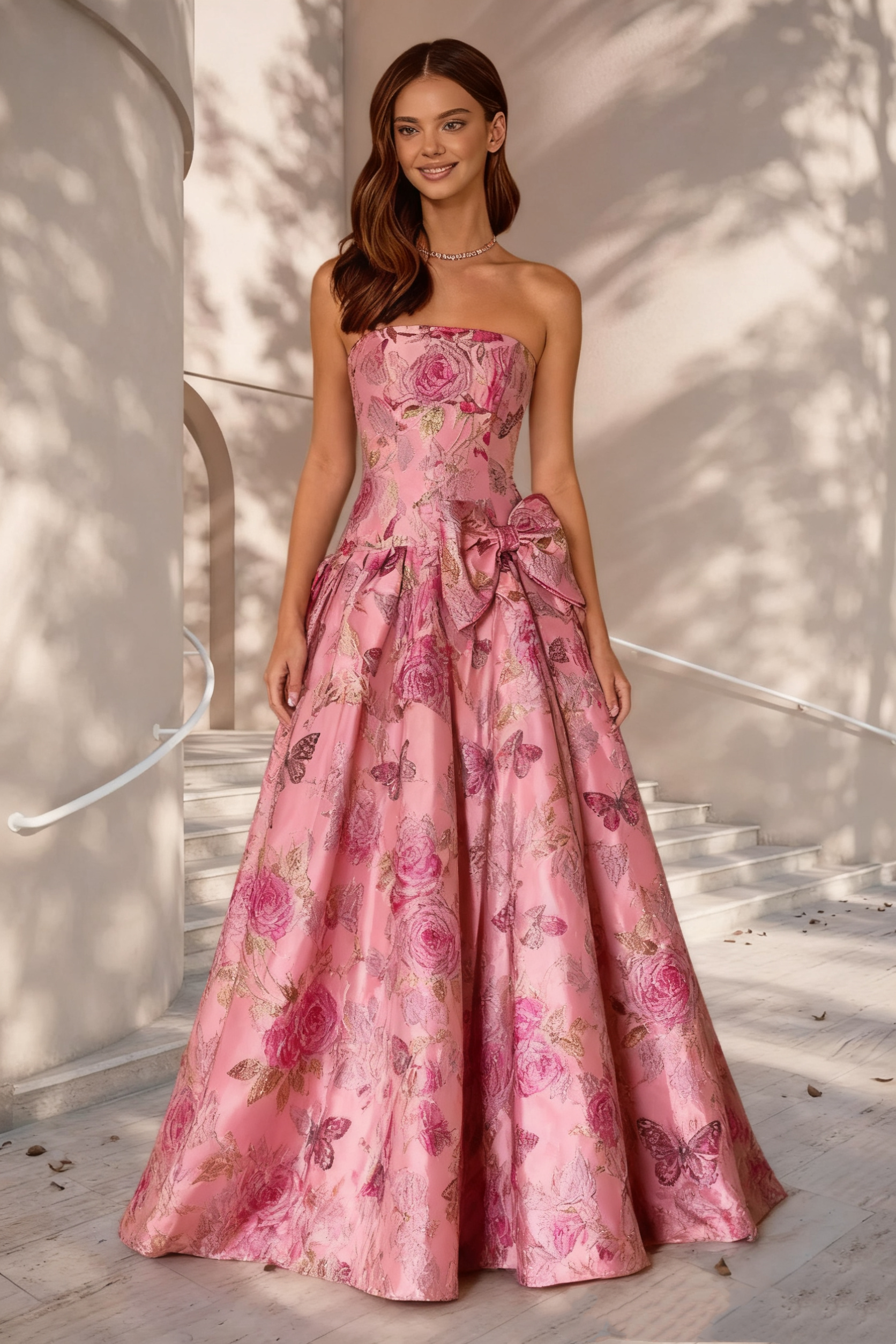 Dressime Sparkly A Line Sweetheart Floral Long Prom Dress