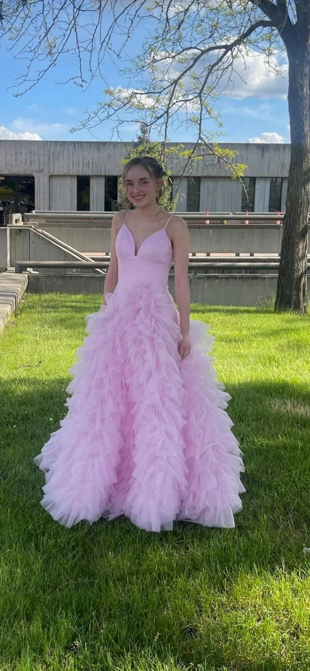 Dressime A-Line Spaghetti Straps Tiered Long Prom Dress With Slit