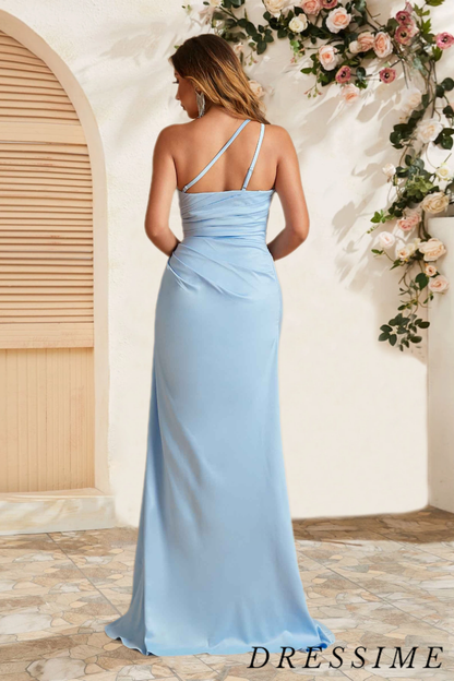 Dressime Chic Mermaid One Shoulder Satin Floor Length Bridesmaid Dress With Slit