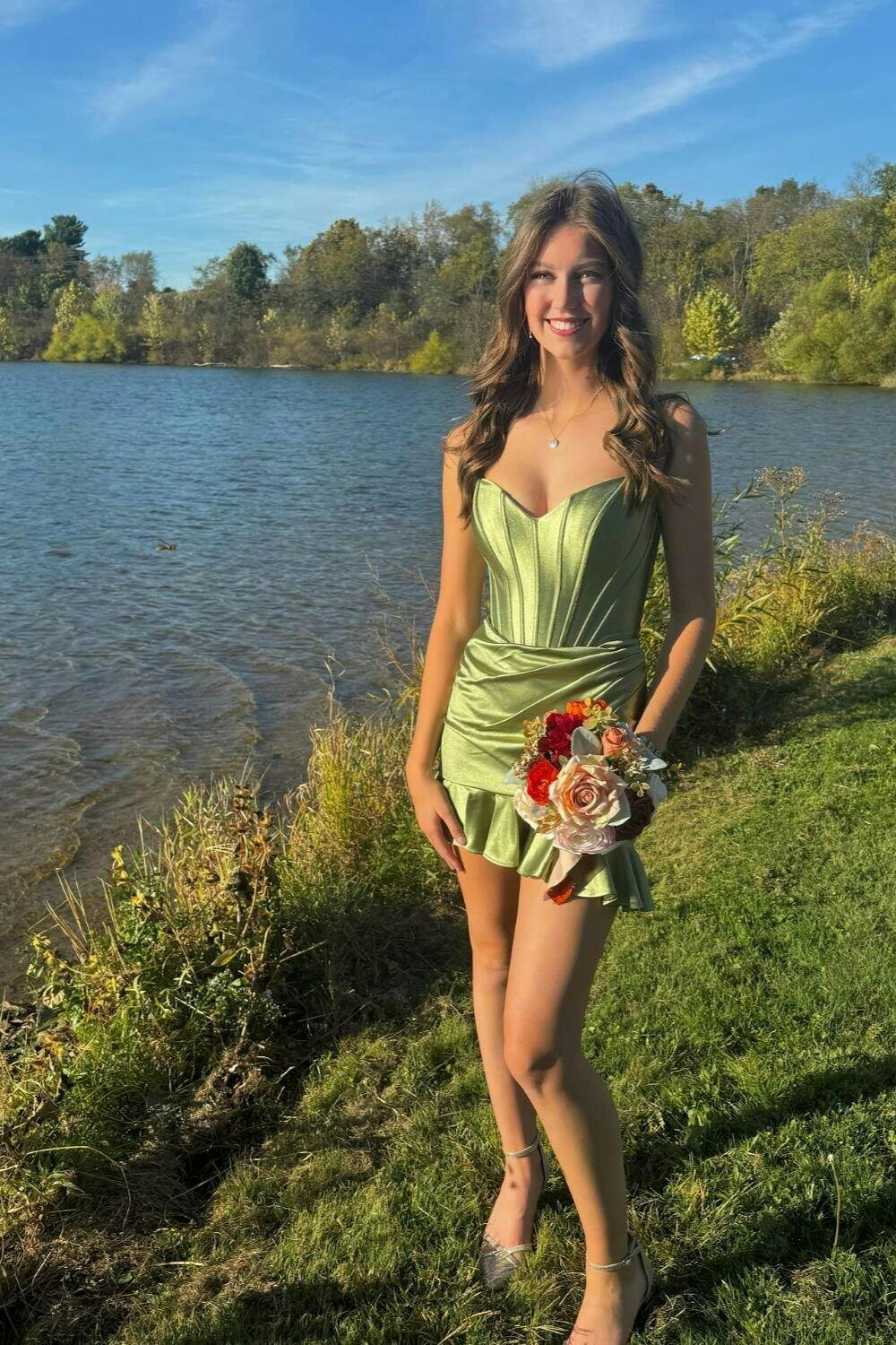 Dressime Fitted Strapless Satin Corset Bodice Ruffled Short/Mini Homecoming Dress