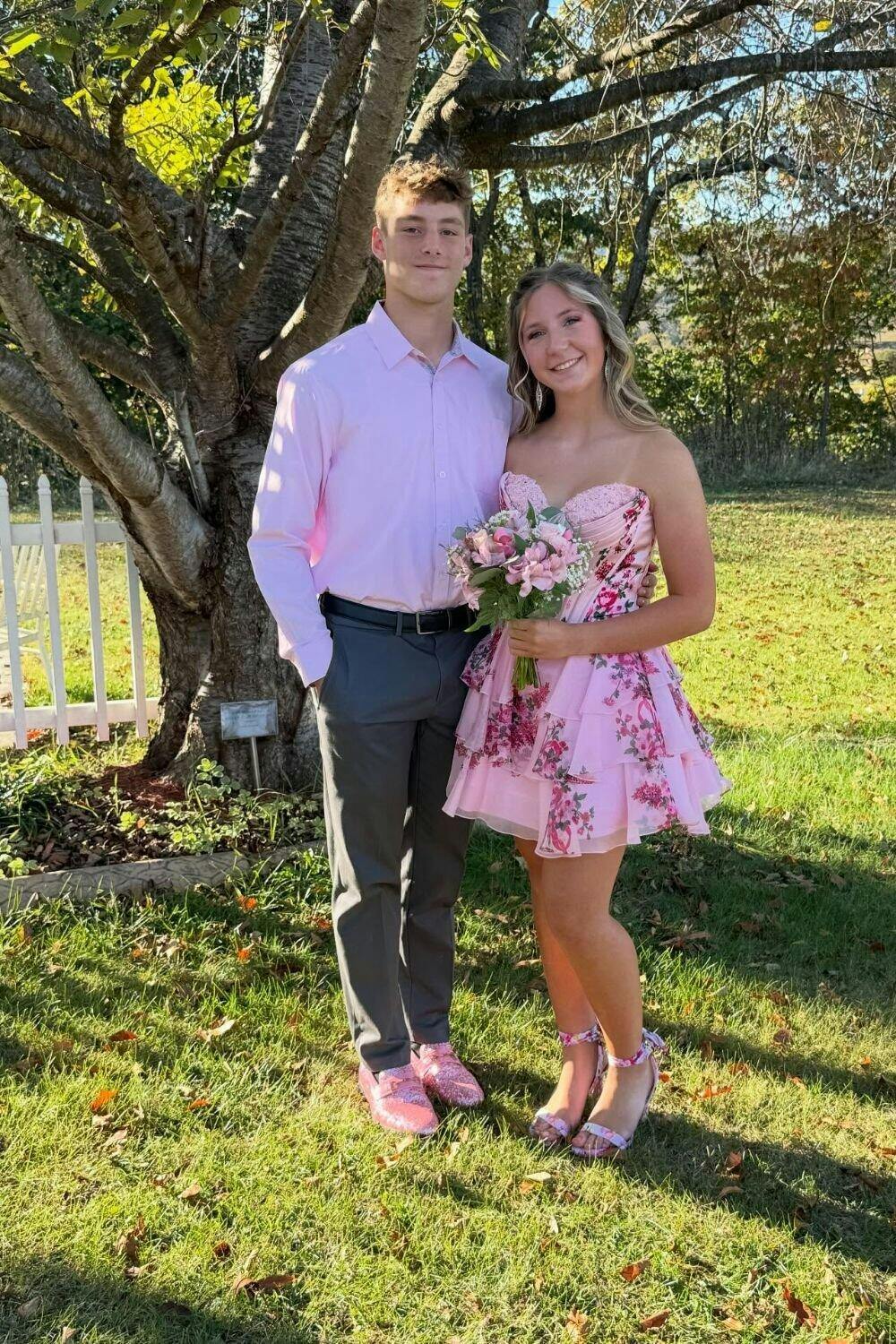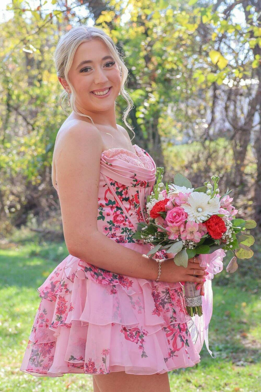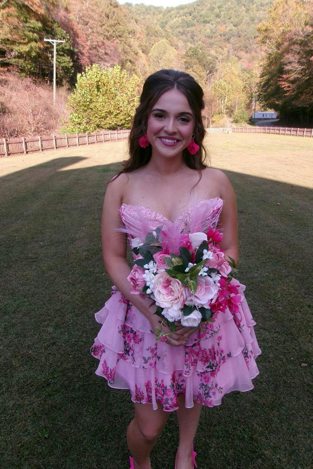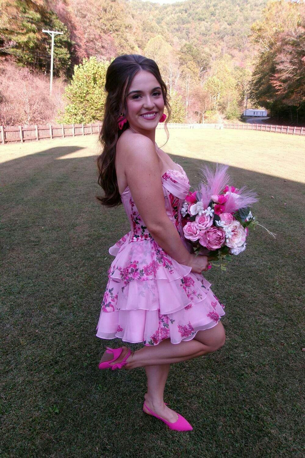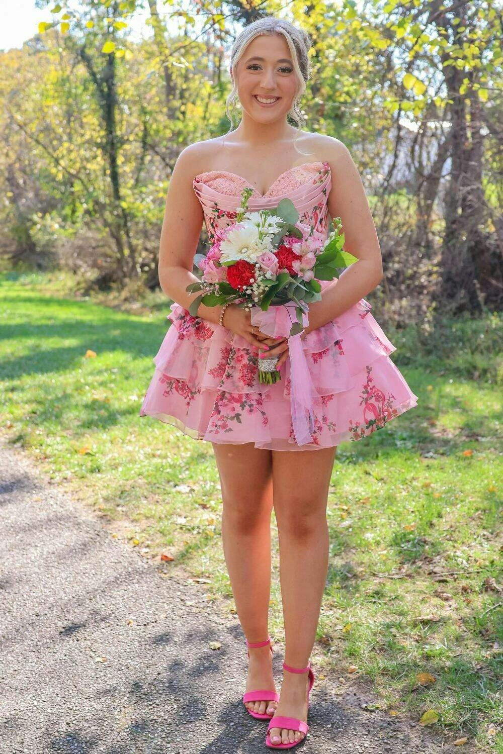 Dressime Sparkly A Line Sweetheart Floral Short Homecoming Dress