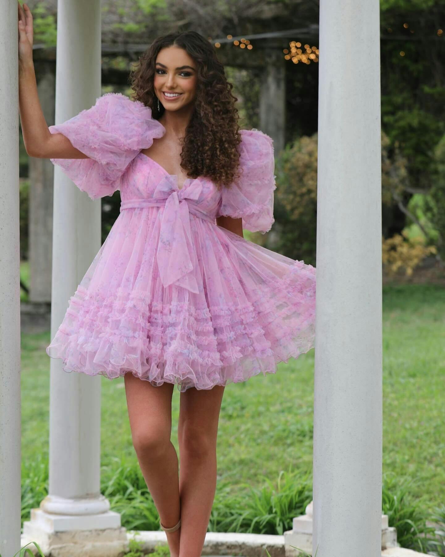 Dressime Unique Short Layered Tulle Sweetheart Neck Short Cocktail Dress, Homecoming Dresses